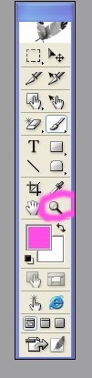 最大化彈出的圖片框,開始對圖片進行編緝.點擊左邊工具欄中的"放大"工具,如下圖那個紅色圈起來的就是放大工具.,
