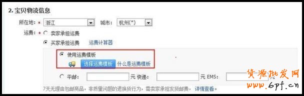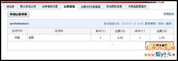 4) 回到商品編輯頁(yè)面-“寶貝物流信息”-“選擇運(yùn)費(fèi)模板”-“應(yīng)用模板”,模板設(shè)置完成。