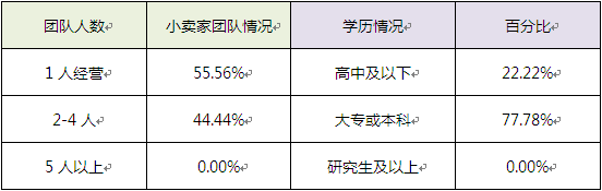 從小賣家的經營團隊和學歷來看,這些店鋪都是淘寶“小而美”的一面。小賣家的多為一人經營,或者夫妻合作,單槍匹馬闖江湖,困難可想而知!雖然都有大專或者本科學歷,有想法有學識,規模卻依然難以擴大。