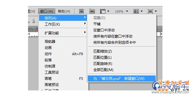 打開一個psd后,選擇窗口 > 排列 > 為”XXX.psd“新建窗口。
