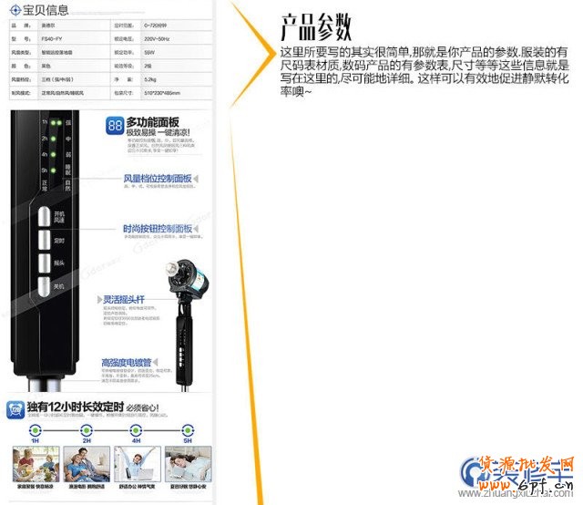 上圖,給大家的第一感覺是什么?清涼舒適科技感強烈~這就是風扇需要傳遞的第一信息.甭管你寶貝好不好價格有多便宜。你要傳遞的就是那種高大上還有契合你這個產品的氣質!