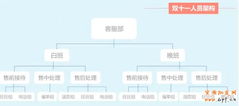 售前電話組,電話熱線解說活動做產品推薦,購買還是通過旺旺組來購買的。晚班跟白班的配置是一樣的。雙11客服的職責:售前接待:旺旺接待,電話接待,負責客戶咨詢下單的售前工作,解決客戶的一些問題,告知店鋪活動盡力促成成交。催單小組:旺旺、旺信。對客戶拍下沒有付款的膽子,定時發送溫馨話語提醒客戶付款。售后小組,旺旺電話。客服收到商品關于商品疑問的解答,退換貨申請辦理。比如客戶服務部人員及時間安排因為今年有預售環節整個雙11的人員安排都要提前。11月10日~11月17日共8天的安排,其中10~11日24小時的安排,12~17日15小時以上的安排。活動時:售前人員人數增多,旺旺接待,電話,催單組,活動后,售前人員適當支援售后工作,售后人員增多。比如,活動時首先10人,催單2人,售后2人,活動后售前5人,催單1人,售后7人。具體支援客服人員來源,各商家可以看鴿子擁有的資源情況。