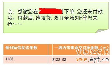 以上問題都可以通過各種應(yīng)對策略來解決,最重要的是要保持和客戶的溝通。客戶拍下商品未付款,人已經(jīng)不在電腦面前了,旺旺溝通不限時,要保證溝通的及時有效性,手機號給了我們希望!打電話給客戶?容易引起客戶反感,而且人力成本太高。那么發(fā)短信給客戶是一種不錯的選擇。