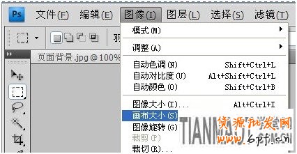 1、在photoshop中打開剛才的純色背景素材,然后點擊工具欄中的圖像-選擇畫布大小。下圖: