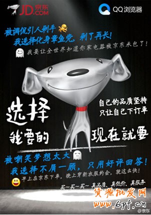 天貓“蓄謀已久”的大招,無疑京東深受其害。原本的電商狂歡節如今自己卻不能用了,京東只能臨時撤換所有廣告。這不,都請來了QQ瀏覽器幫忙。