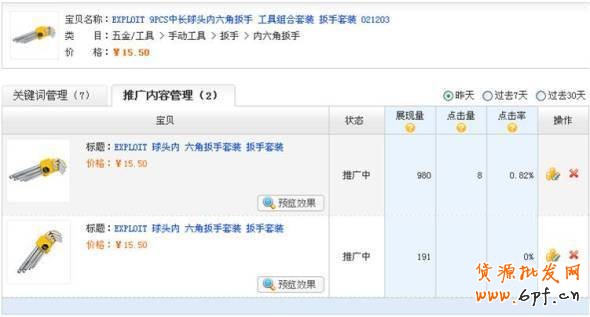 賣家在推廣中,利用最廣泛的就是直通車,而針對直通車推廣的產品,可以做兩個推廣內容管理。比如可以放兩張不同的圖片,然后針對該產品的大流量關鍵詞出適當的高價,讓這個產品在流量大的詞匯搜索中有一個好的展現位置,接著連續觀察兩天左右的時間,就可以判斷出圖片的優劣。如果圖片的點擊都不盡人意,那么可以做新的主圖再做對比分析。