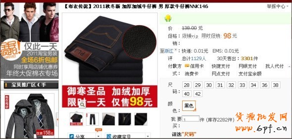以男裝類目為例,男裝的款式大多數基本相似,怎么抓住客戶第一眼球?圖片就變成了直通車點擊量的關鍵。在同樣的關鍵詞搜索下,圖片質量好點的就會占優勢。所以掌柜每次選取拍攝精美的圖片后,都會對圖片進行加工加上文字,把圖片上看不出來的屬性寫出來,讓圖片更加顯目。表達的意思更多更明確。比如此刻牛仔褲,在圖片頁面以文字形式將屬性描述清楚:加厚加絨保暖。并通過測試圖片點擊率等數據,判斷用什么圖片。