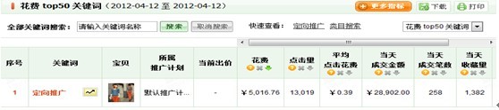 出價0.4,每天點擊量有13000個點擊,平均點擊花費0.39.定向出價0.4就能引來那么大的流量,所以說這款寶貝的隱性質量得分非常的高。