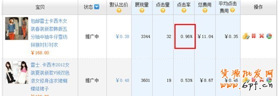 如下面是女裝定向的2款寶貝的出價和點擊情況。