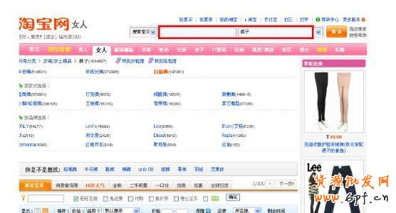 第二個入口是在淘寶首頁選擇我要買,進入類目搜索頁面,選擇您要的寶貝類目進入搜索頁面。比如:選擇女裝類目下的褲子類目。