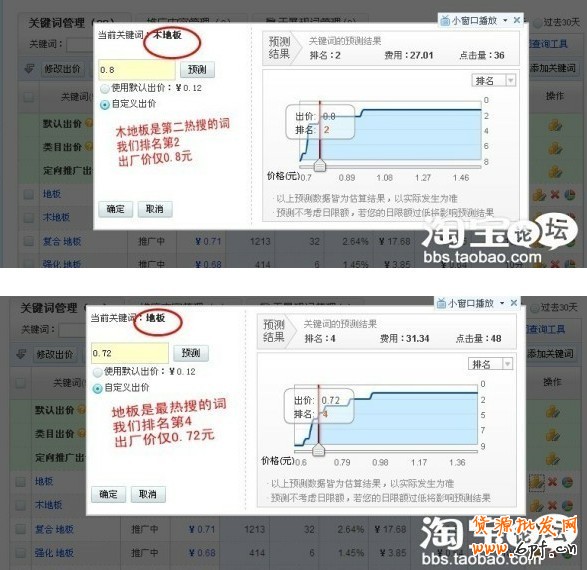 3. 盡量添加好的關(guān)鍵詞,優(yōu)質(zhì)的關(guān)鍵詞要出價稍微高點,建議是前2-6名,(這個純屬個人觀點哈)首先排第一的成本太高,不合算;其次第2-6名是顯示在每頁的右邊的位置,而且比較顯眼,客戶也比較習慣去點擊,說白了就是位置好。如果您的行業(yè)太熱門,我建議您拍在第二頁的2-6名,或者第三頁,以此類推。