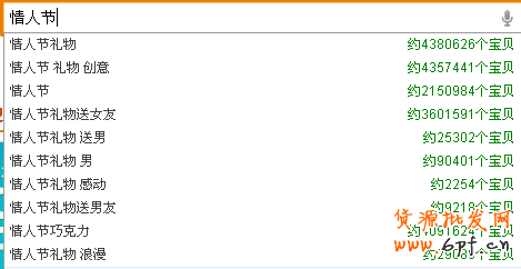 以“情人節為例”在搜索欄我們可以得到很多相關聯的關鍵詞