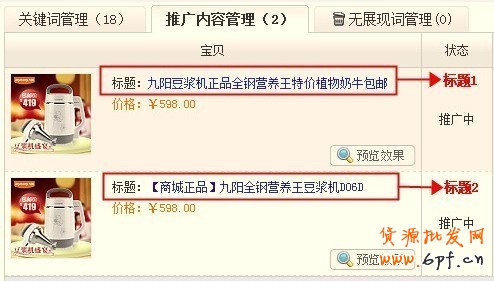 推廣內容中圖片一樣,設置2個不同的標題,通過數據分析,進一步對標題關鍵字進行下一步的優化。