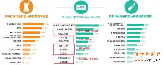 靠譜的商品詳情頁是轉化重中之重,我們在制定無線詳情頁的內容框架時,要嚴格借鑒當前類目主流的詳情頁和消費者關注的焦點圖。通過對關注焦點的數據分析,對店鋪實際情況進行分析, 優化出更簡約的呈現框架。整體主要體現賣點、形象圖、細節圖、尺碼圖。