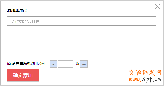 2)添加單品,設(shè)置單品抵錢比例,最低可設(shè)1%,最高可設(shè)99%,必須為整數(shù)