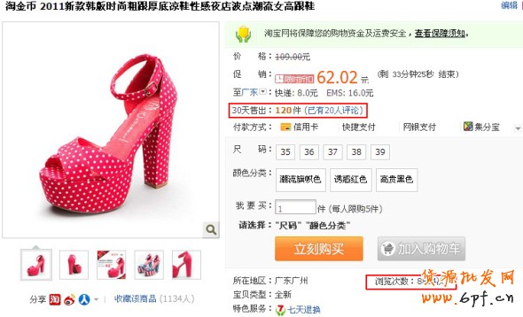[著重點(diǎn)1]:選款非常重要。我選擇了這款鞋子,是因?yàn)槲艺J(rèn)準(zhǔn)了今年的女鞋流行元素是厚底,粗跟,還有在街頭大街小巷隨處都能看到的潮流元素:波點(diǎn)。它有特色,具有競(jìng)爭(zhēng)優(yōu)勢(shì)。
