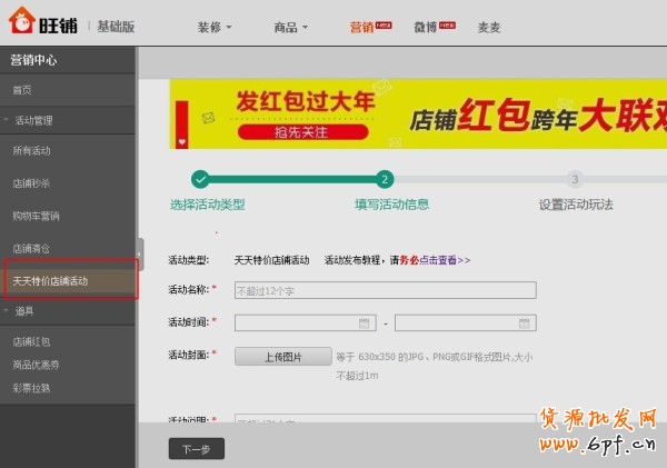 最新信息3.28:小伙伴們,天天特價(jià)店鋪活動(dòng)也進(jìn)入全面開放啦!現(xiàn)在無論你是心級(jí)鉆級(jí)冠級(jí),所有賣家通通都能使用天天特價(jià)店鋪發(fā)起活動(dòng)了!還不快到旺鋪后臺(tái)試試?!詳細(xì)教程請(qǐng)見本帖!
