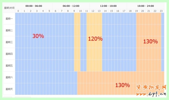 (2)周六、周日:是流量較好的時間。10:30–00:00都可以設130%來獲取更多流量。