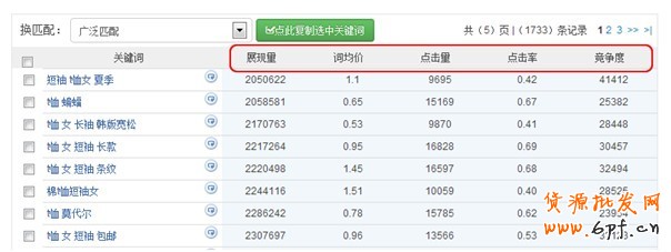搜索結果,總共有5頁,共計1733條匹配詞記錄。看看是不是都與寶貝相關度極高啊。這一簡單操作,免除了你頻繁去用excel表,篩選關鍵詞,而且是否與該寶貝匹配吻合,則又是很大一個問題。用這個工具網站,就這么簡單操作。