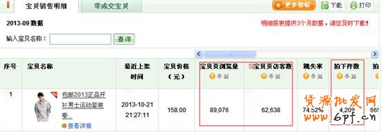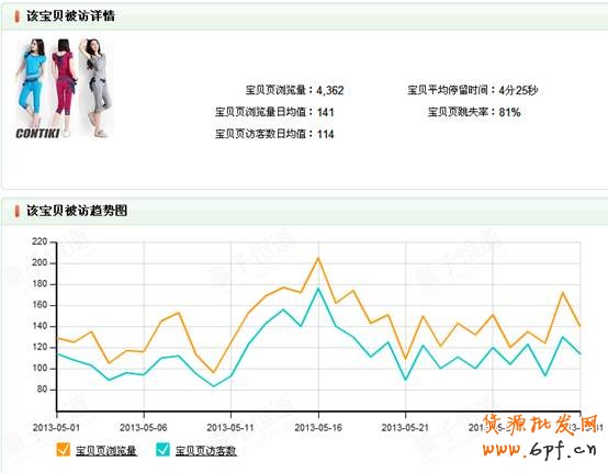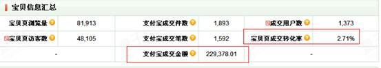 該寶貝流量雖然偏低,但是寶貝的跳失率相對兩款主推寶貝較低,訪客停留時間也是比較長的,所以將該款寶貝重點選取為秋款預熱寶貝。