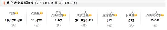 A、直通車總體的轉化數據: