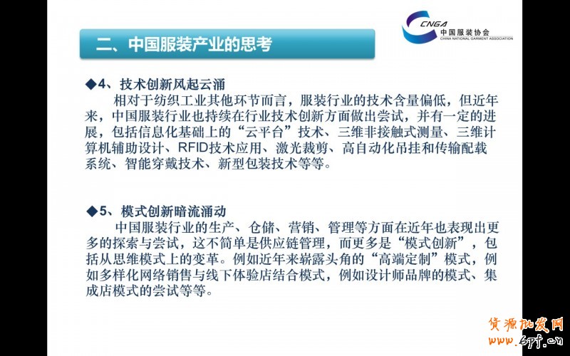 通過數(shù)據(jù)我們可以發(fā)現(xiàn)服裝行業(yè)正在經(jīng)歷新舊交替,崛起與沒落已經(jīng)共存。整個(gè)一個(gè)產(chǎn)業(yè)增長(zhǎng)速度放緩,但變化較多,難點(diǎn)痛點(diǎn)不少。其次工業(yè)化服務(wù),以及資本化,綠色化,企業(yè)數(shù)字化,品牌聯(lián)盟化以及技術(shù)創(chuàng)新路徑的多樣化并存。而微笑曲線模式正在向全程協(xié)同模式演變,從中長(zhǎng)期意義上看,這極具轉(zhuǎn)折性意義。