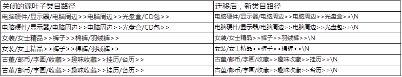 3)部分葉子類目關(guān)閉,且系統(tǒng)可以遷移原葉子類目下商品: