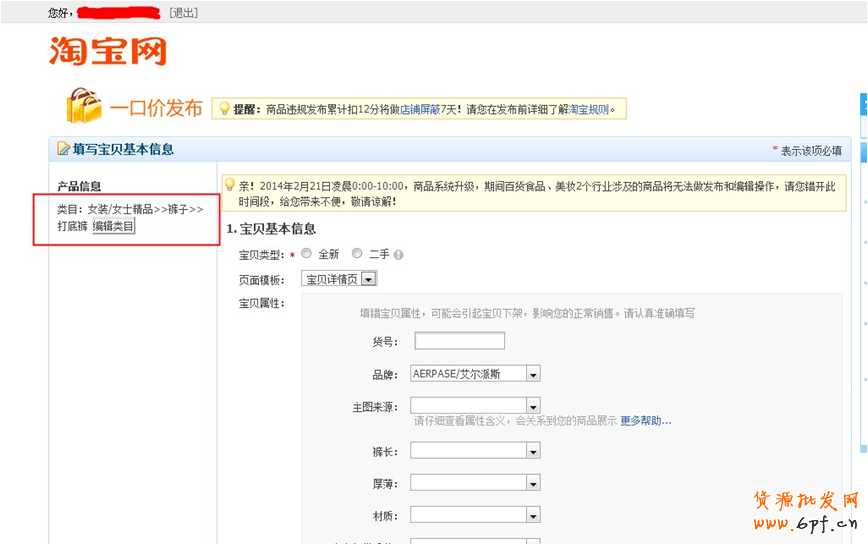 見下圖紅框中的類目路徑所示,女裝/女士精品,為一級(jí)類目;打底褲,為葉子類目。