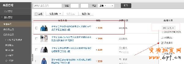 三、當我們昨晚分類后,就可以將寶貝添加進去了,點開左上角的寶貝管理,就可以實現(xiàn)添加了。如下圖: