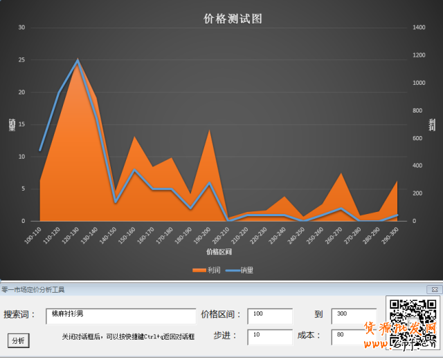 這個是相對靠譜也適合大部分人用的,所以會偏低的,大家只要看圖形就好了,一件80塊錢的衣服,定價最高是這件衣服的4 倍,但前面也說了,價格要依靠價值感來承載。從圖形上看,最優選擇是[150,200]和[290,300]這兩個區間,才能實現利潤最大化。