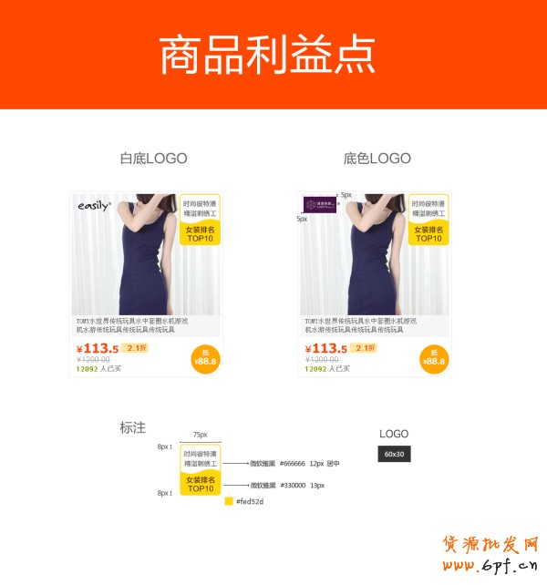 - 右側(cè)的商品利益點(diǎn),請?zhí)釤捥顚懮唐纷钪匾睦纥c(diǎn)文案,按照規(guī)范要求的字體,顏色,大小制作,不可隨意更改