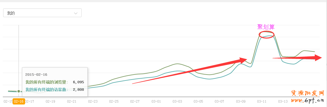 3)高潮期:直通車、鉆展大規模商業流量引流, 配合聚劃算活動引流頁面,全面曝光。