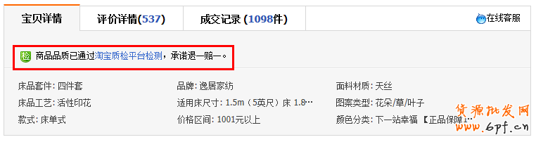 第三方質(zhì)檢服務(wù)在寶貝詳情頁中的展示(如下圖)