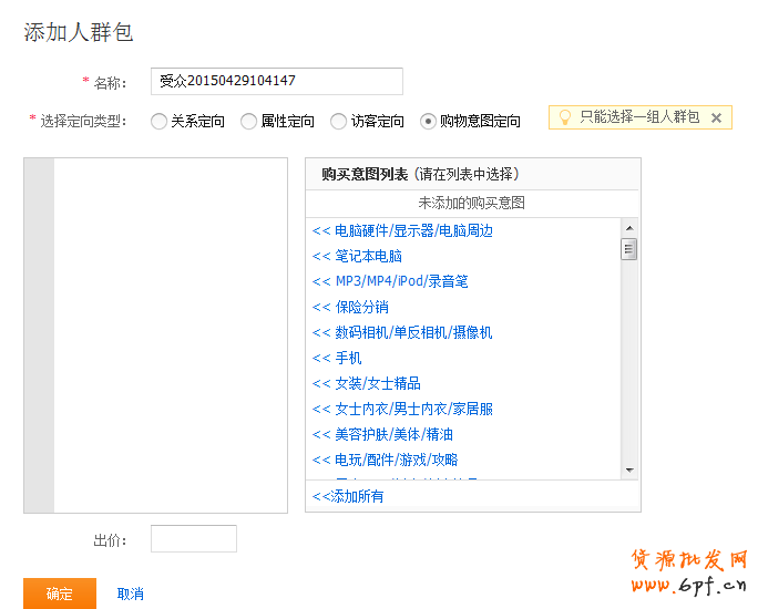 4、購買意圖定向,該定向標簽涉及類目品類比較多,相對來說,流量會比較寬泛。大家還可以結合自己流量需求情況來選擇性的使用。
