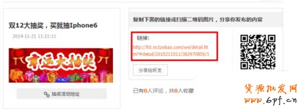 2.設(shè)置好后,接下來(lái)我們把抽獎(jiǎng)放入手機(jī)店鋪,系統(tǒng)生成的手機(jī)鏈接不能直接放到手機(jī)店鋪,但可以發(fā)布到微淘廣播,我們可以把手機(jī)抽獎(jiǎng)地址發(fā)布到微淘,把微淘的地址放到手機(jī)店鋪里面。