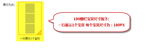 步驟五:在寶貝推薦模塊設(shè)置的190/950通欄里面,一般支持的寶貝尺寸如下顯示: