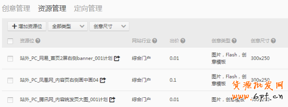 站外資源位主要投放一些綜合門戶類的網站:站外年前經過一次站外資源位底價的調整,很多站外資源位底價都降低到0.01,我們選取了其中的兩個,通過使用底價0.01+溢價的方式來獲得精準的流量,提高流量的性價比。