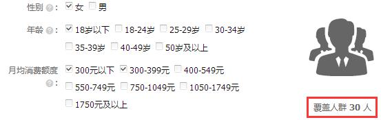 b.【自定義搜索人群】主要由三個維度組成:分別是“性別“、”年齡”、“月均消費幅度”。對于如何勾選這些選項進行投放,可以從“行業”找大方向,其次根據咱們店鋪寶貝自身的特點進行投放測試。