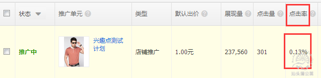 2、店鋪櫥窗興趣點的點擊率低,會對整個賬戶有影響,因此添加興趣點一段時間后,要對其進行優化,就像優化我們的主推寶貝一樣。如上圖,紅色方框中,過去14天都沒有流量,展現又很大,此類興趣點是要進行刪除。對于綠色方框中的興趣點,流量不多,點擊率較低,花費上也不是很多,可以降低出價,繼續留意觀察再做優化,做到控制不必要的展現,這樣可以有效的防止點擊率過低的情況,部分可以嘗試進行圖片的更換測試。