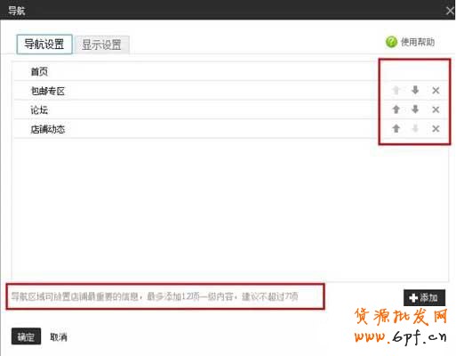 介紹完店招接下來繼續介紹導航,設置導航的方法與店招是一樣的,點擊編輯進入導航編輯界面,淘寶賣家可自行選擇菜單欄,點擊“添加”按鈕即可。