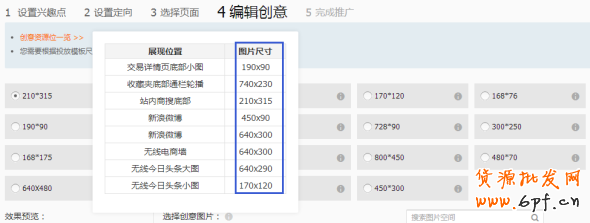 5、選擇對應的圖片位置和尺寸,設置創(chuàng)意標題,提交