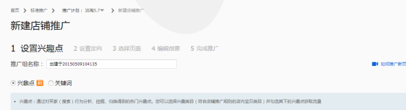 1、進入店鋪推廣,新建店鋪推廣,找到興趣點