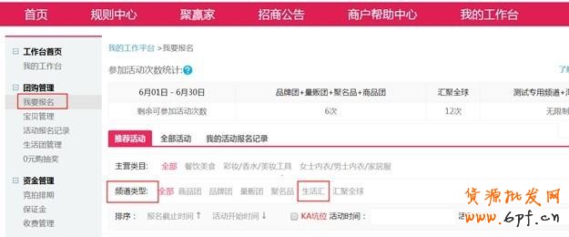 2、點(diǎn)擊“我要報名”,選擇頻道類型“生活匯”,出現(xiàn)所有生活匯可報名的活動。