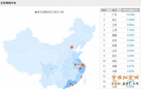 通過生意參謀選擇出成交量大的地域。