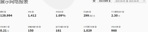 4月4日開始投放鉆展,首先要做的就是要擴充流量,把店鋪的流量整體拉升起來,所以我篩選了客戶群比較穩(wěn)定的位置,利用有效的訪客定向做全天的投放。這樣能比較有效的進行實時的調(diào)整。通過當(dāng)天的報表發(fā)現(xiàn)店鋪和寶貝的收藏很高,但是沒有產(chǎn)生訂單數(shù)量。