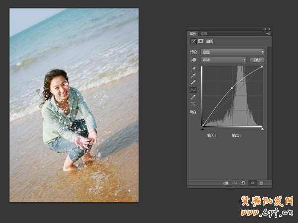 觀察圖片,發(fā)現(xiàn)圖片是偏黃和偏紅的,這里我們新建一個(gè)曲線的圖層,目的是將增加綠色,降低紅色,至于藍(lán)色就那個(gè)S型曲線。
