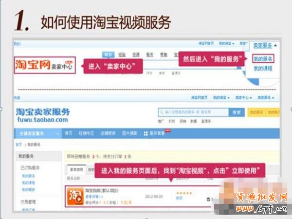 1.點擊淘寶首頁頂部“賣家中心”選項,在右上角“賣家服務”選擇“我的服務”;然后選擇“淘寶視頻”的標識,點擊進入上傳視頻的頁面。