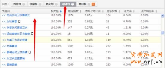上圖可以看出,雖說是在移動包的詞,但是有手機(jī)標(biāo)志的卻很少。主要原因就是沒有重點(diǎn)做無線端,所以接下來就看看如何讓手機(jī)標(biāo)志出現(xiàn)得更多。
