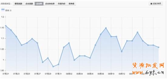 先用流量解析看看,選的這個詞的展現(xiàn)走勢,大致選擇一個月的周期,選擇拉升趨勢,以及點(diǎn)擊率的走勢(選擇一個月的周期,選擇拉升或者維持在某個較高水平的詞)