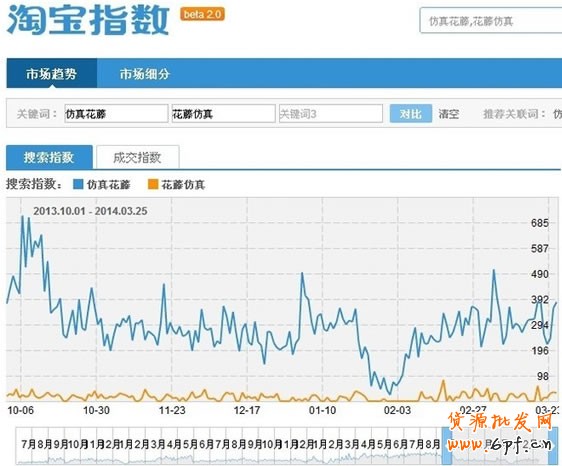下面這是搜索仿真花藤和花藤仿真的搜索指數圖